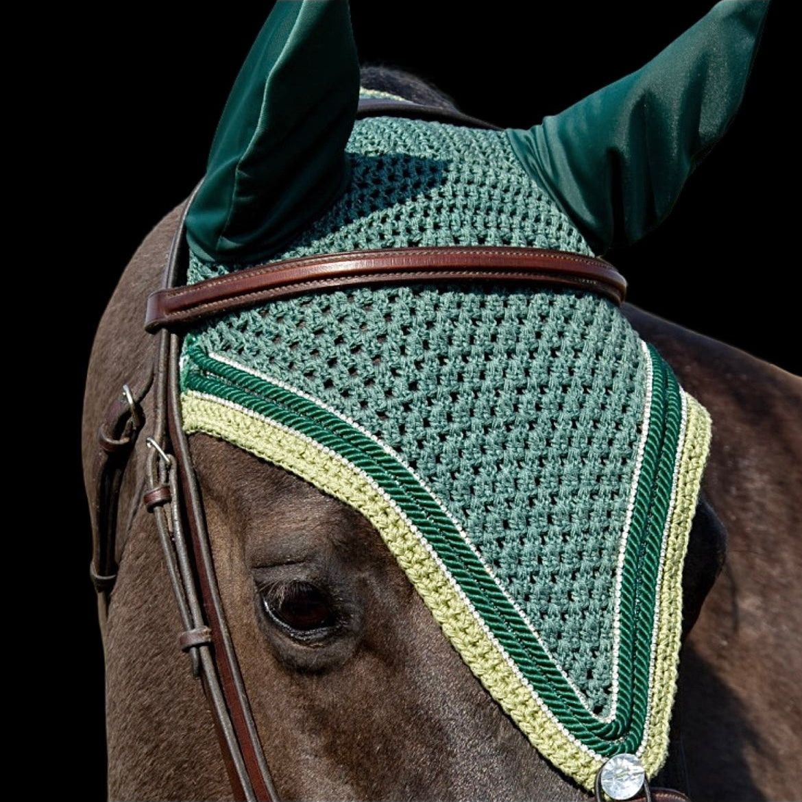 Tiedown Bonnets - Full - Hunter Green Base/Olive Straight Edge/2 Clear Bling/1 Hunter Green Bling/2 Piping